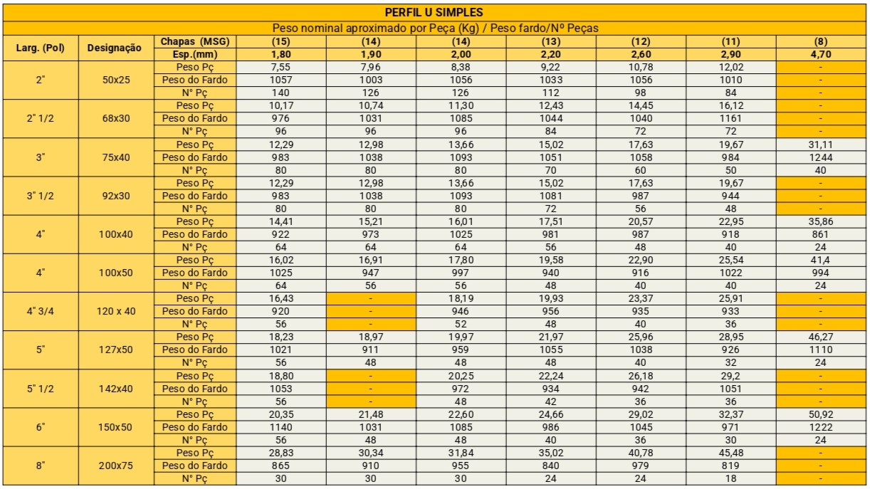 PERFIS U SIMPLES