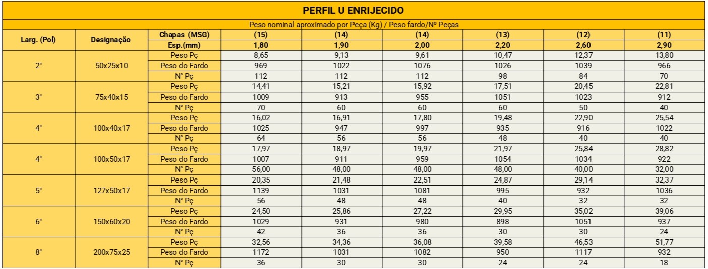 Perfis U enrijecido